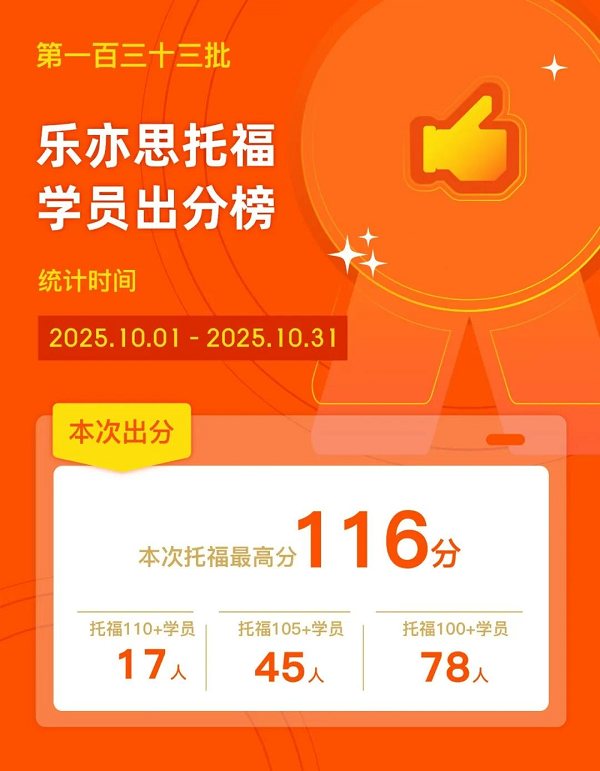 近日,樂亦思托福再次傳來喜訊,高分學(xué)員如潮水般涌現(xiàn)!第133批出分榜新鮮出爐,最高分達(dá)到了驚人的116分!其中,托福110分以上的學(xué)員多達(dá)17人,105分以上的有45人,而100分以上的更是達(dá)到了78人!